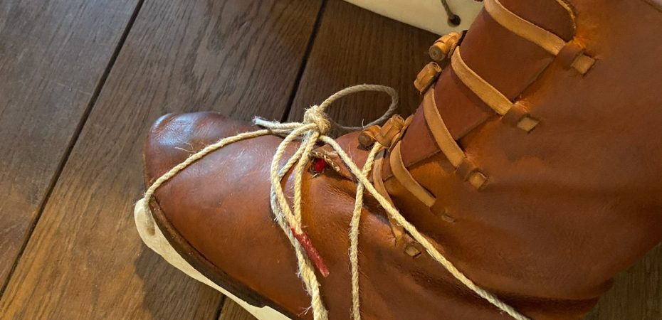 The glissen are made by bikkel en been https://bikkelenbeen.com. A dutch boneworker who makes replica’ s of various archeological objects made from bone. The type are metatarsus bones with two holes drilled in them. Through these holes runs rope with which the glissen van be fastened to the shoes. Because there are also glissen with iron inserts at the back there probably was not one method of lacing the glissen onto your feet. I tried several options and this was the most stable for now.