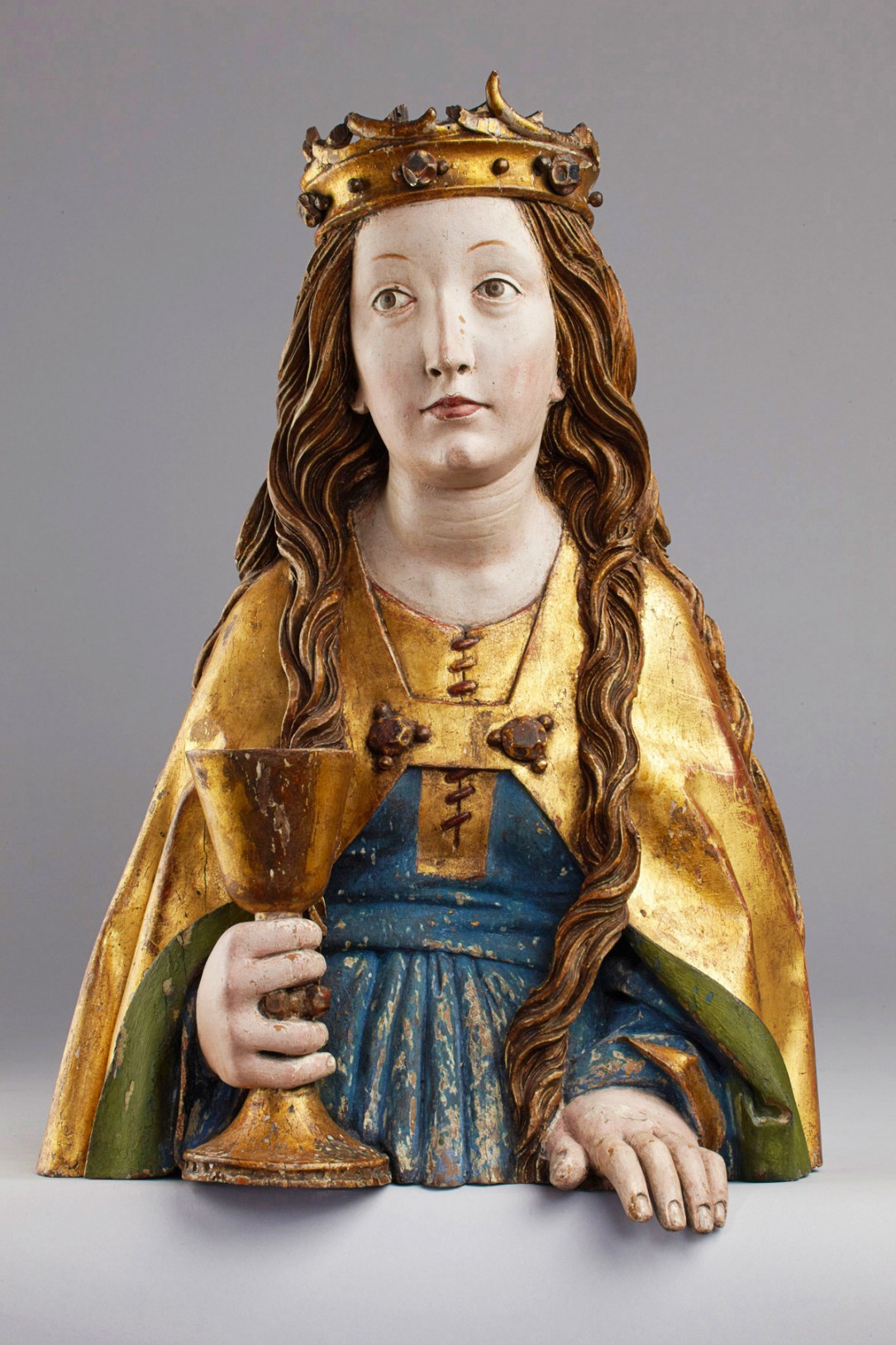 The fact that visible laced closures are a thing on kirtles with short sleeves is not enough evidence it was done on long sleeved dresses from the period. I found quite some images of front laced closures on short sleeved dresses, but not one on a long sleeved dress from the period. I did found a german statue of saint Barbara from 1490 that had a closure at the front with a lace, but it started higher on the waist. Although I am slightly disappointed in my former self for not researching the late 15th century closures, I am optimistic that I can fix this.